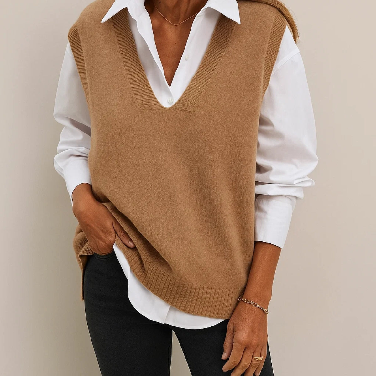 Stylová dámská pletená vesta s nadčasovým designem, která skvěle doplní každý outfit. Jemný, příjemný materiál poskytuje pohodlí po celý den a přitom působí elegantně a uhlazeně. Ideální pro vrstvení přes košili nebo halenku – perfektní volba pro moderní ženu, která dbá na styl i komfort. Tato vesta se stane univerzálním kouskem vašeho šatníku.